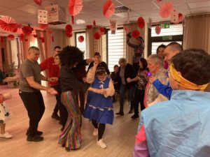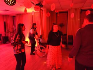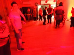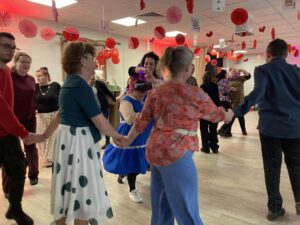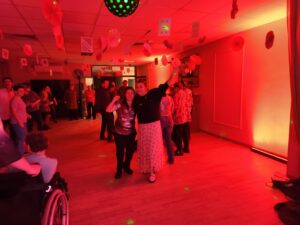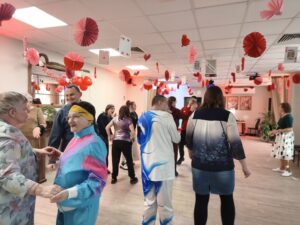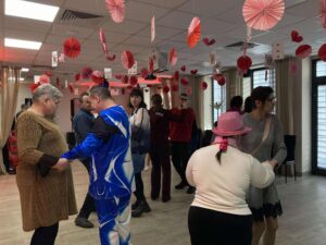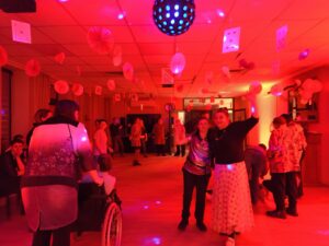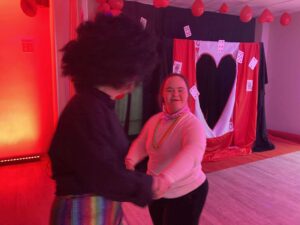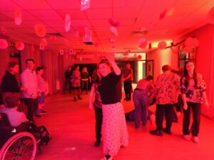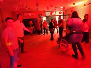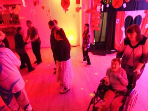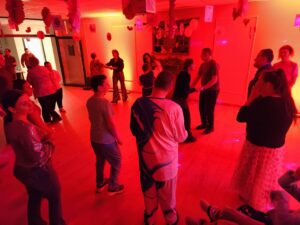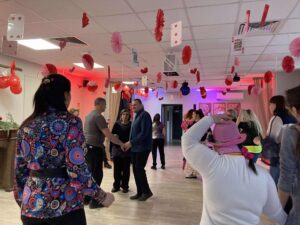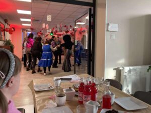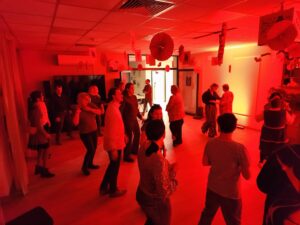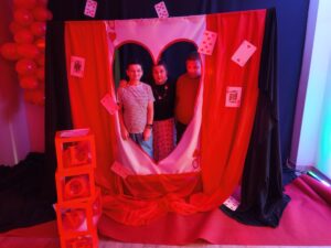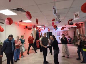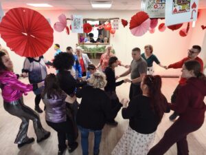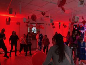 Impreza odbyła się w klimacie disco lat 80. Sala została udekorowana serduszkami, balonami oraz elementami nawiązującymi do stylistyki lat 80-tych. Uczestnicy chętnie włączyli się w klimat imprezy, zakładając stroje nawiązujące do lat 80-tych (neonowe bluzki, legginsy, opaski na włosy i błyszczące dodatki). Podczas zabawy parkiet tętnił życiem przy największych hitach Disco lat 80. Wspólne tańce, a także zabawy integracyjne sprzyjały budowaniu relacji i wzmacnianiu poczucia wspólnoty. Była również okazja do wykonania pamiątkowych zdjęć w specjalnie przygotowanym walentynkowym kąciku fotograficznym. Nie zabrakło charakterystycznego napoju – oranżady oraz słodkiego poczęstunku. Pączki, ciasteczka oraz inne przysmaki umilały wspólnie spędzony czas. Atmosfera była pełna ciepła i życzliwości.